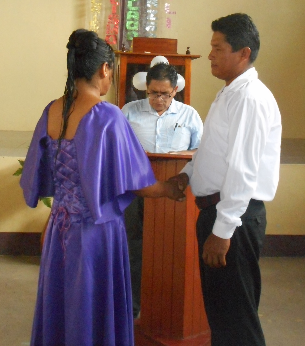 We had a very full and exciting 3-day training this time in that we had a double wedding and 8 baptisms included in the training sessions! Since the inauguration of the new church in San Francisco there needed to be concentrated training on what the church is and how each member is to participate. Along with these trainings two couples of the congregation wanted to solidify their union in the eyes of the Lord and in the eyes of the State by getting married. In the Shawi culture couples do not have marriage ceremonies as we do and so when they become Christian they have a desire to be formally married in this way and so, of course we honored their request.