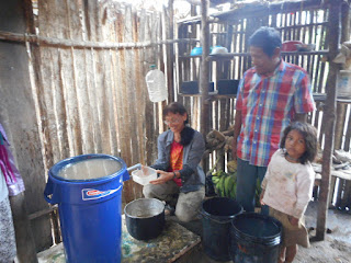 Testing the flow rate of the filter and then praying with this family to accept Christ. |
